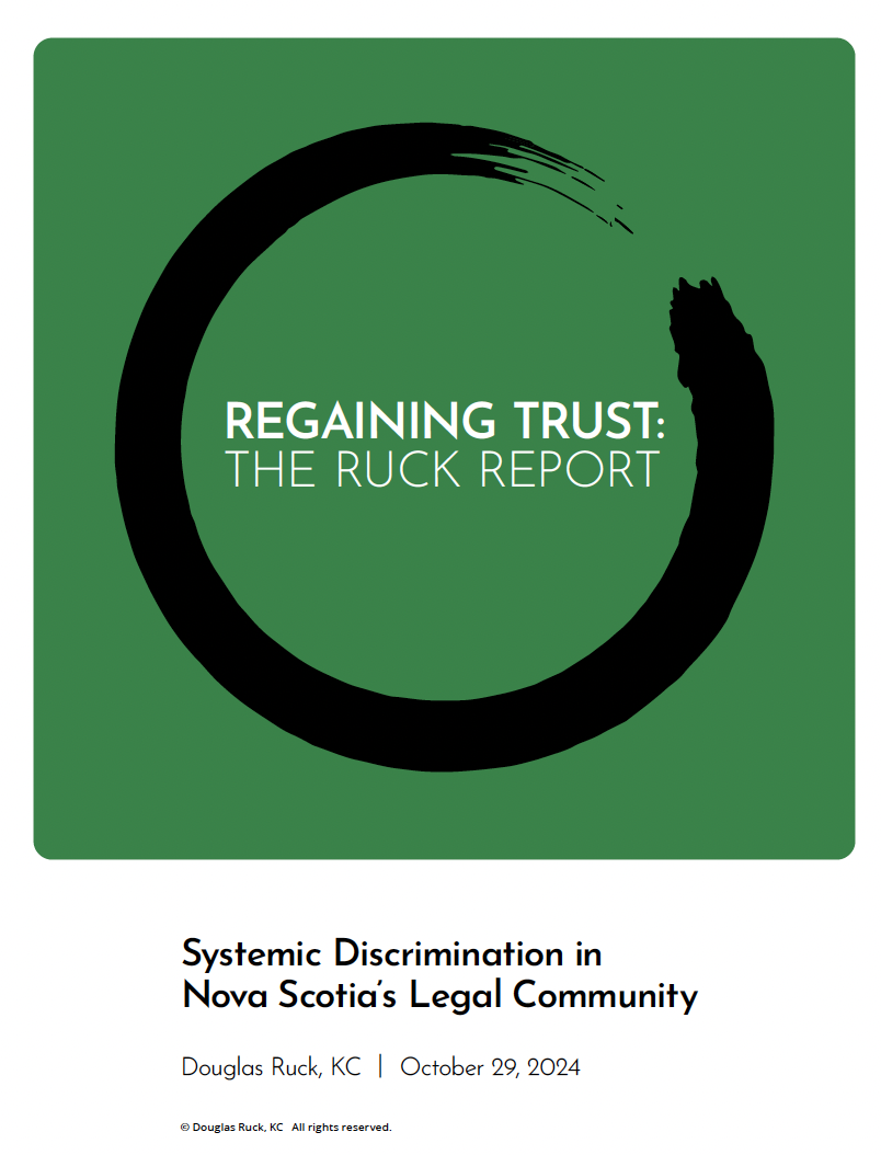 Today, Douglas Ruck, KC, delivered his report, “Regaining Trust” to members of the Nova Scotia Barristers’ Society (the Society), including its governing Council, the report’s Implementation Task Force, all equity committee members, staff members and many interested organizations and individuals with whom the Society has relationships.